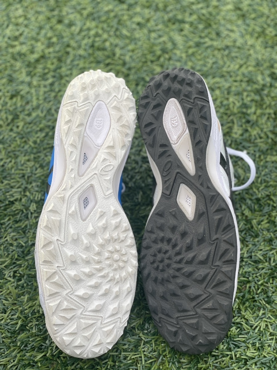 동일한 중창과 스터드가 적용되었습니 플라이트 폼이 적용되었는데 단단하게 발을 잘지지해줍니다 너무 푹신한 제품보다는 조금 단단하게 지지하는게 피로감이 조금 덜한거 같습니다 아웃솔도 스터드 모양이 같고 중간에 환기구멍이 있어 우천시에는 착용이 어려울꺼 같습니다